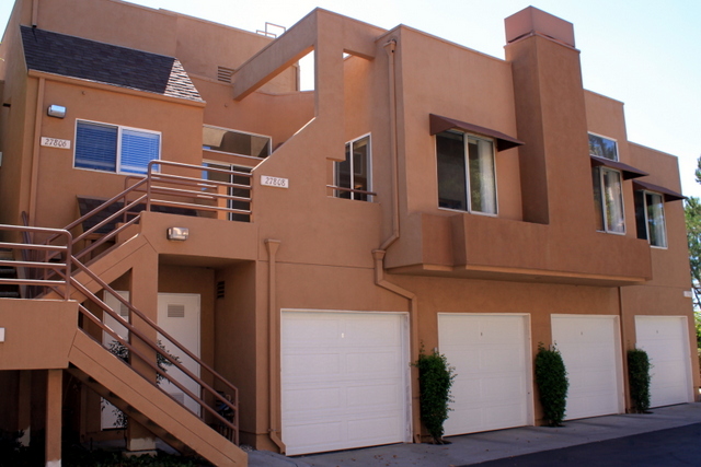 Sophisticated Upper Carriage unit with 2 bedrooms (currently 1 bedroom is being used as an office) and 1 full bath.  This light and bright home has recently been upgraded with neutral designer interior paint, beautiful laminate wood flooring, remodeled kitchen with stainless steel appliances, microwave and sink, Quartz countertops and trendy shaker-style cabinets.  Large laundry room, high ceilings in most living spaces, cozy fireplace, spacious living room with adjoining dining room.  Generous sized master bedroom includes large walk-in closet.  The nicely appointed separate Master bathroom has a tub/shower combination.  The balcony area is great for enjoying some sun, potential potted plant garden, or add a BBQ and connect to the Gas stub out. The location is conveniently located near the community pool area, shopping, Churches, Trabuco Hills High School, dining and Lake Mission Viejo.